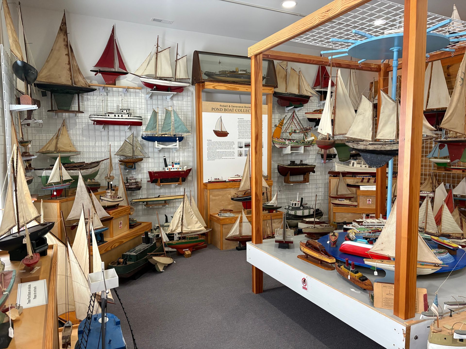 This exhibit is a collection of pond boats amassed by Genevieve and Robert Boxley of Winchester, Virginia over a 50-year period. See simple block-built boats and intricate hollow-hulled sailing craft and everything in between. The entire collection comprises over 150 boats, most of which are on display.