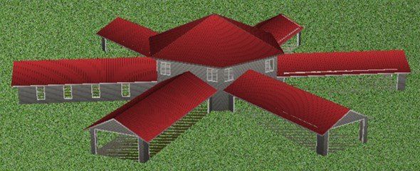 Confronted with an influx of exhibits too large to display the museum, the Museum Board decided to build a large display space to be known as the Exhibit Center. The Exhibit Center is a hub and spoke design consisting of six exhibit pavilions (spokes) around a two-story central exhibit and activities venue (hub).
