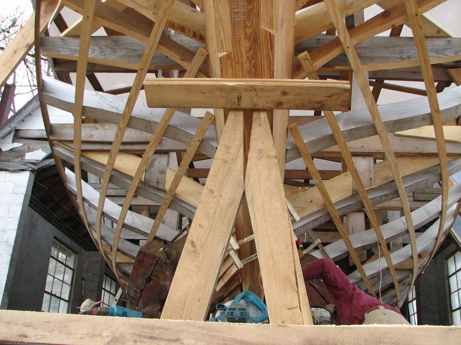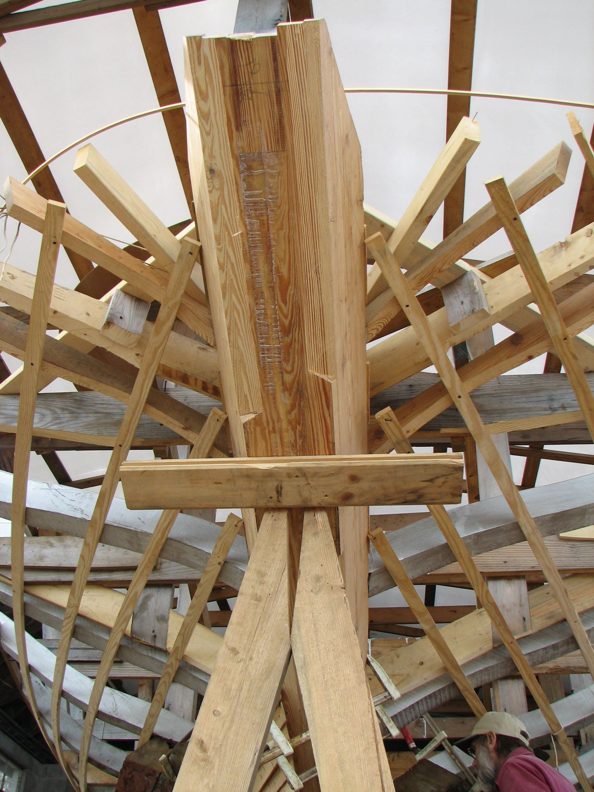 First rebuilt was the Crockett's pilot house. While the decaying hull was still in the water, the Crockett's lines were preserved by the addition of new frames and timbers. Project manager John England and his volunteer crew used a combination of time-honored methods, traditional materials, and innovative techniques that should keep the boat alive for another century. Initial work was done to retain the integrity of its huge bottom logs. In a process which took over four years, deteriorated wood was carefully cut away; framing and planking were rebuilt while maintaining the dignity of her shape; and the log chunks of the bow and stern were replaced. The boat was decked over with 2” square strips of cypress, after which the re-created pilot house was lifted onto her new deck beams in August 2009.