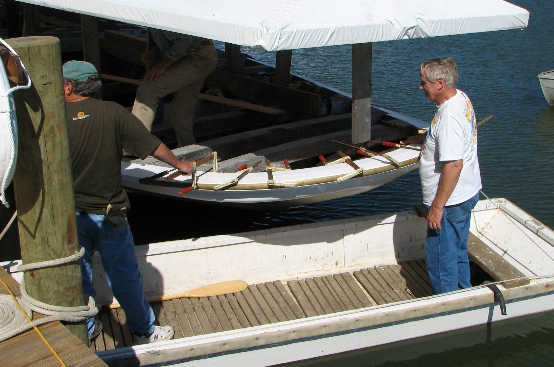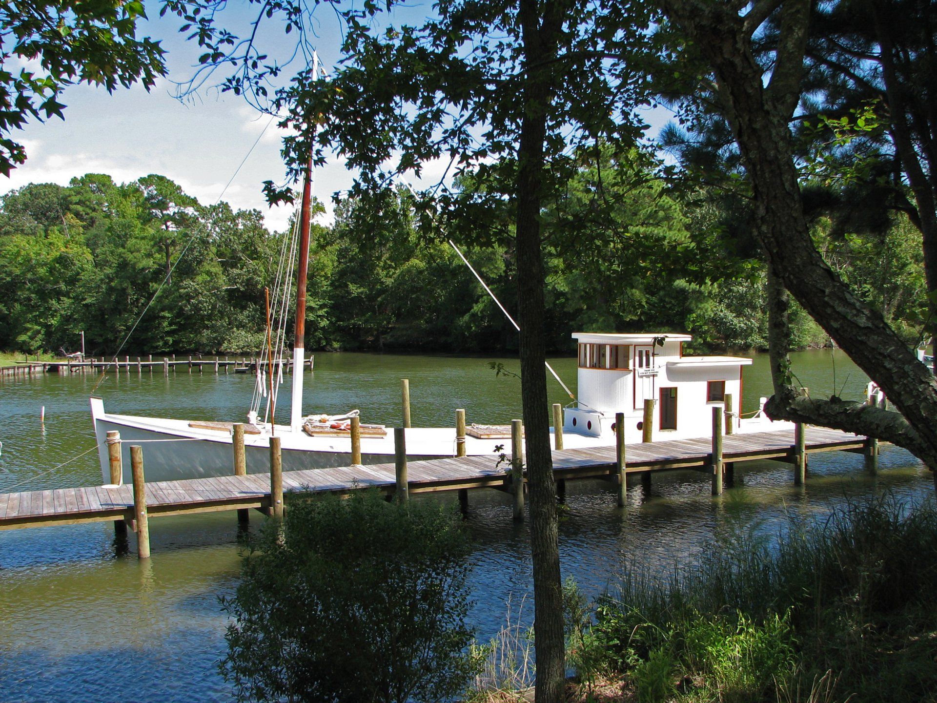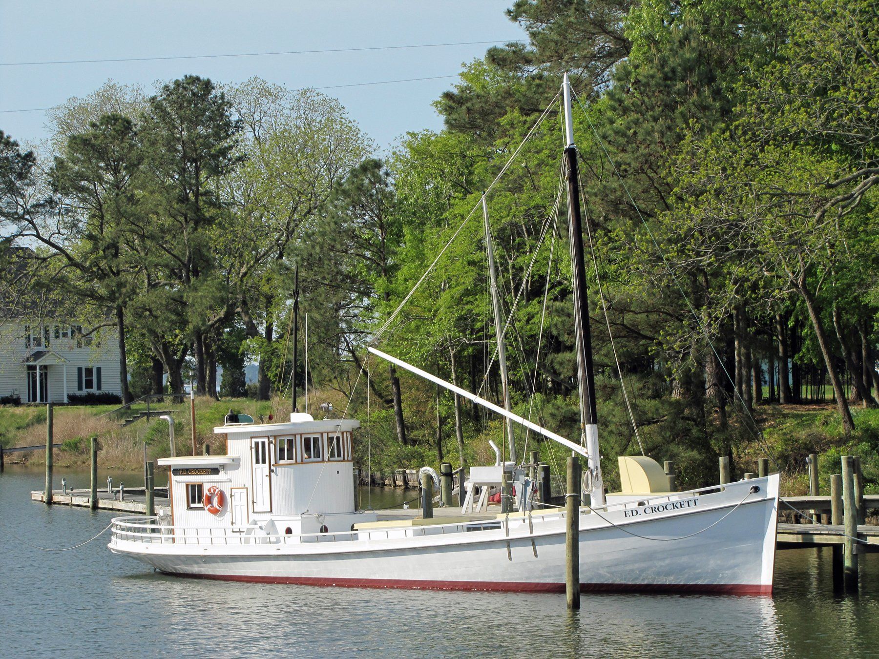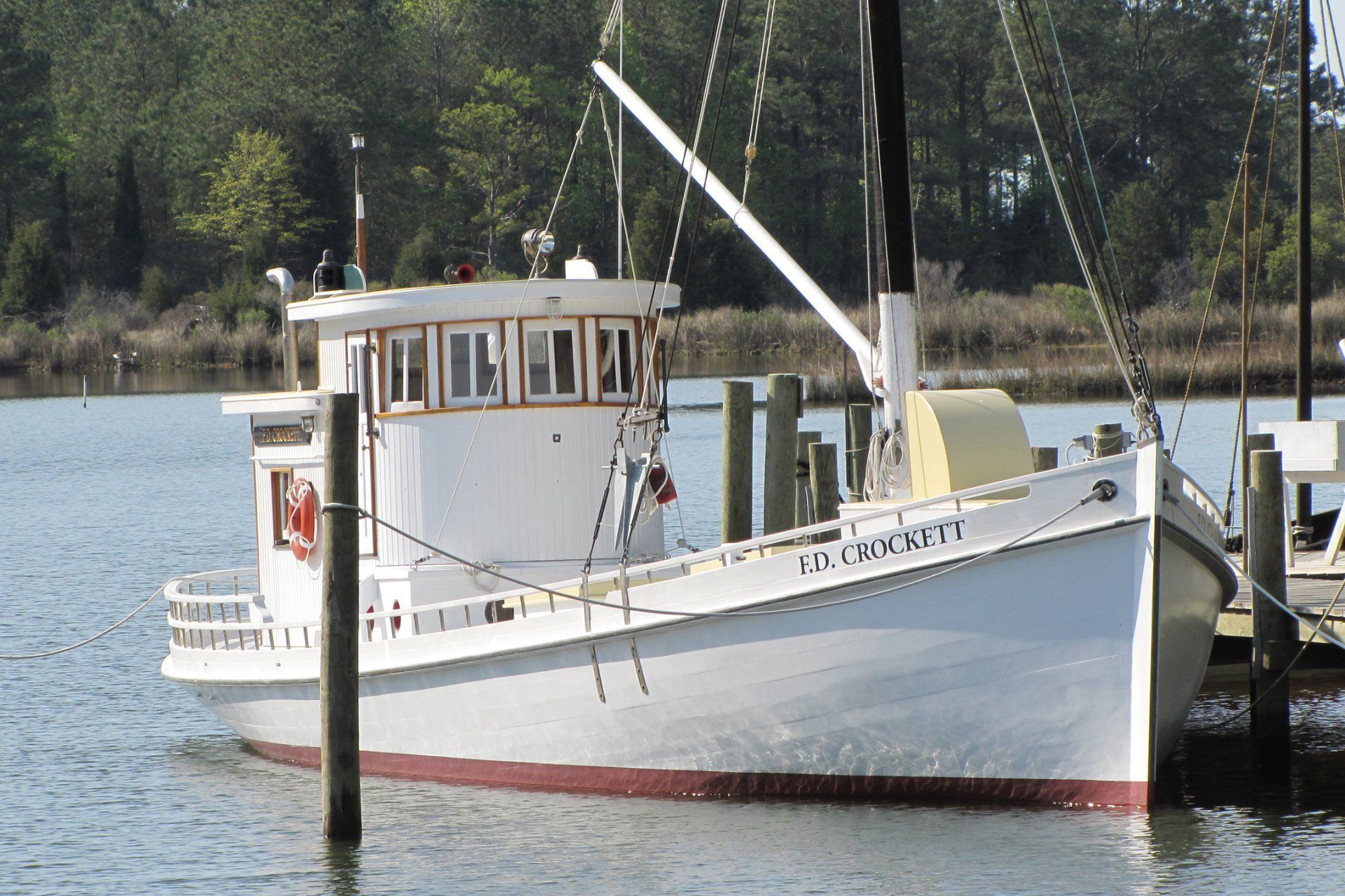 Built in 1924, the 62.8-foot F.D. Crockett is one of only two log-bottom buyboats built exclusively for power, and represents the apex of log boat building on the Chesapeake. Alex Gaines of Dare, Virginia, used the same techniques that were used to build the early sailing "canoes", when he designed and built her 9 log hull to accept a gasoline engine. After Gaines completed the hull, she was taken across the creek to Smith Marine Railway, where John Franklin finished the boat. For 70 years, the F. D. Crockett was used as a working vessel. In 1994, she was converted to a pleasure craft. In 2005 Ron Turner, a descendant of the Smiths, donated the boat and she was towed up the bay from Poquoson arriving in Deltaville on September 5th.
