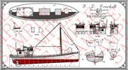 Ray Rodgers wanted to build buyboat models, but soon realized most of these boats were built by “rack of eye” and had no plans as such. Ray began measuring the boats he wished to model and committed his very precise measurements and observations to these drawings. Over time, in addition to being the only vestige of some of the subject boats, the drawings became an art form in their own right.